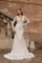 Monica Loretti is a luxury wedding dress brand with 20 years of experience in designing beautiful, flattering bridal and we are so delighted to now be their Bedfordshire stockists. The brand is based in Italy and specialises in creating stunning, craftsmanship led wedding dresses that are both stylish and timeless. With simple yet bold silhouettes that blend perfectly with the bold necklines to create high-fashion drama.