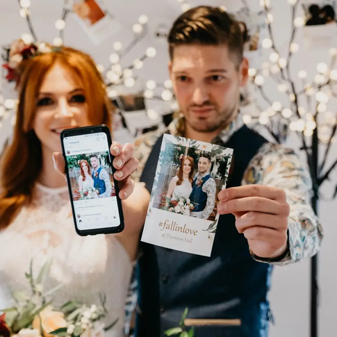 Hashtag Printing provides a double-printing service, which we love! It means that your guests can print their photos on the day, leave with it, and you'll be given a copy too! Which'll create such a fun little photo album. Hashtag Printing also allows guests to upload their images to Instagram, Twitter or even via WhatsApp, or in seconds it can be printed, and transformed into a stunning keepsake. Complete with bespoke artwork designed for your wedding day.
